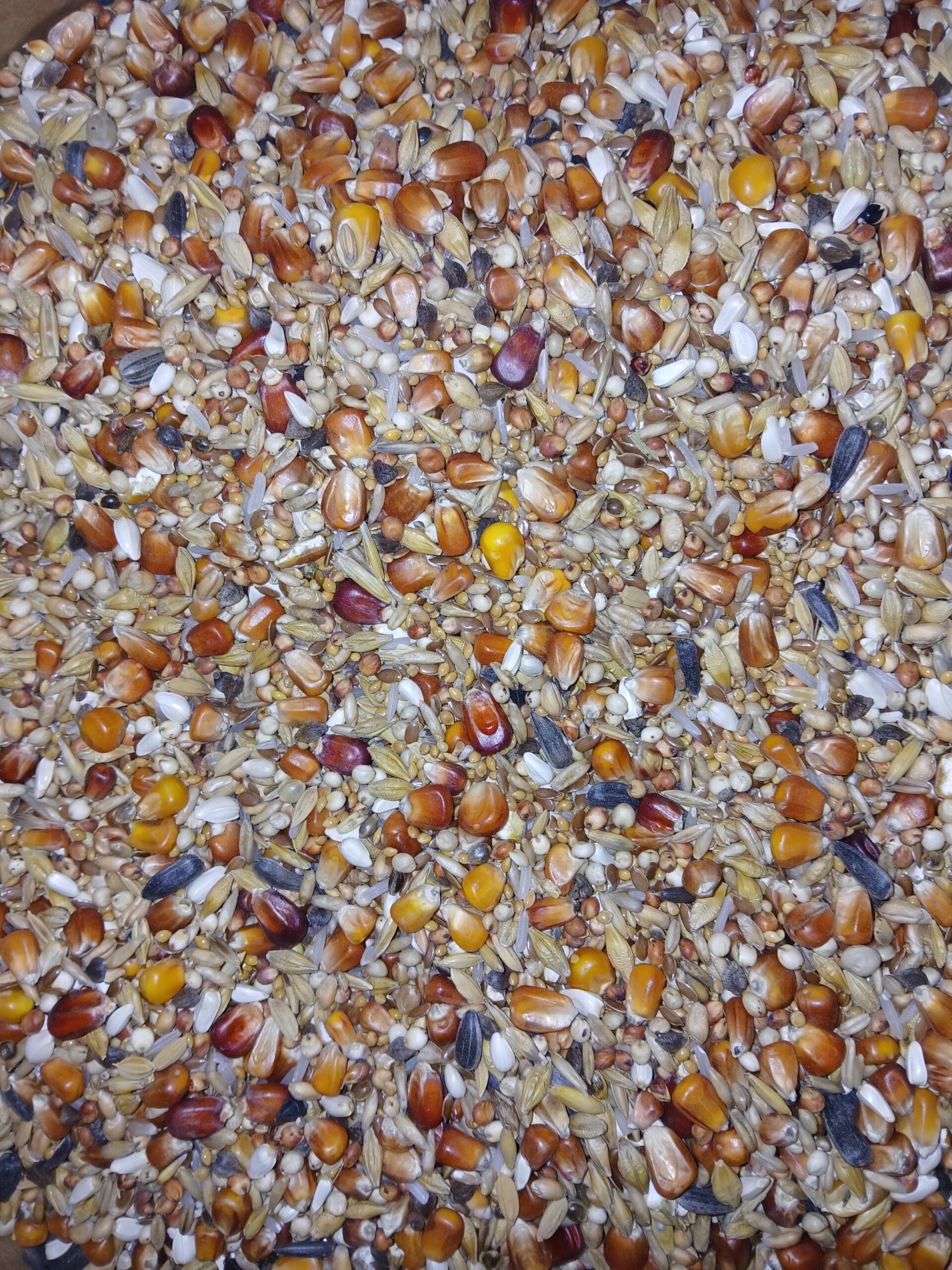 Skład: Kukurydza 25%, Kukurydza czerwona 12%, Proso złote 9%,Owiec nagi 8%, Dari 8%, Sorgo 8%, Jęczmień 6%, Pszenica 5%, Kardi 5%, Siemie lniane 4%, Słonecznik 3%, Gryka 3%, Ryż łuszczony 2%, Ryż Paddy 1%, KOnopie 1%.