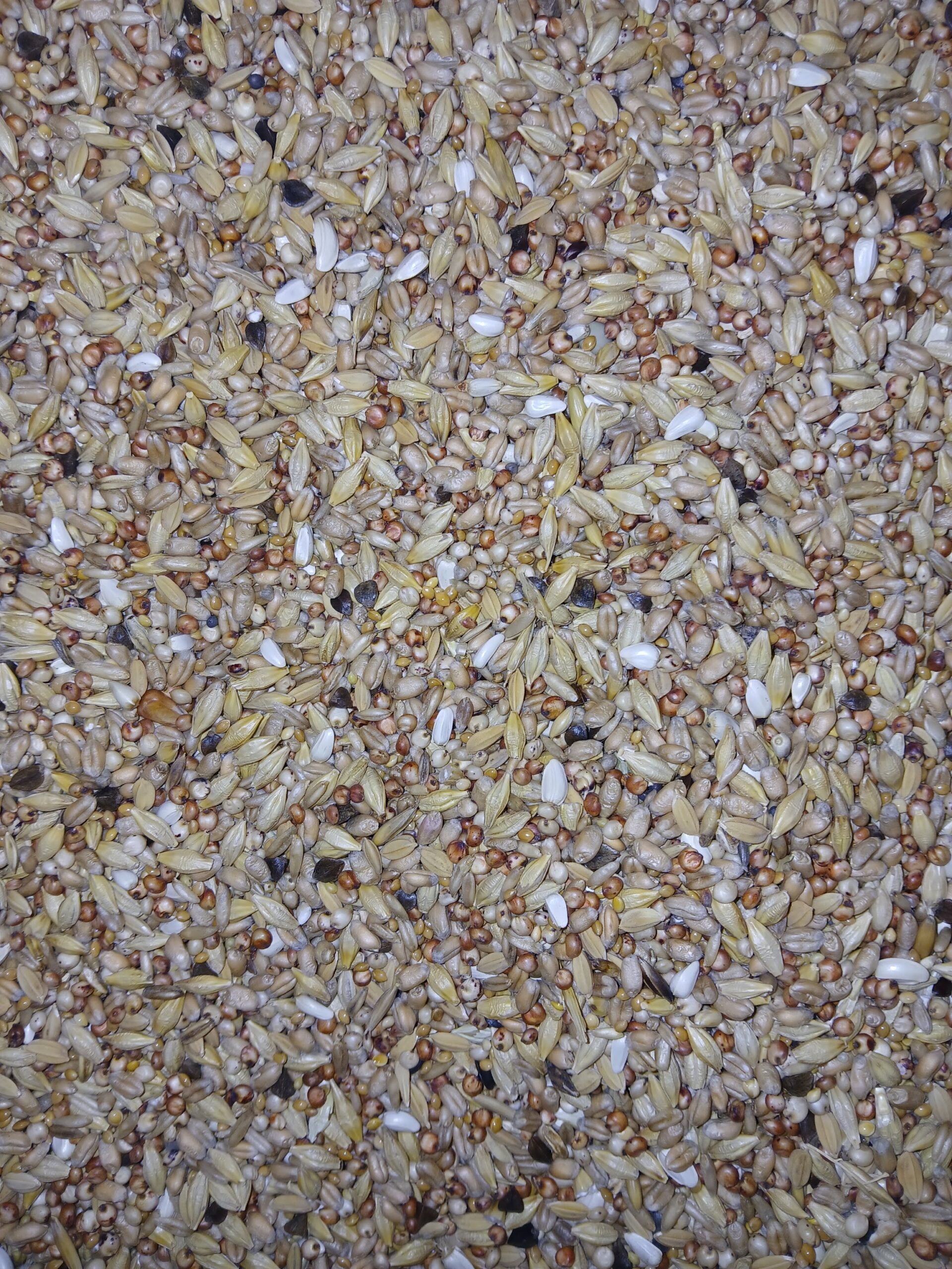 Jęczmień 34%, pszenica 33%, sorgo 11%, dari 11%, kardi 3%, kanar 1%, proso złote 5%, ryż paddy 1%, owies łuszczony 1%.