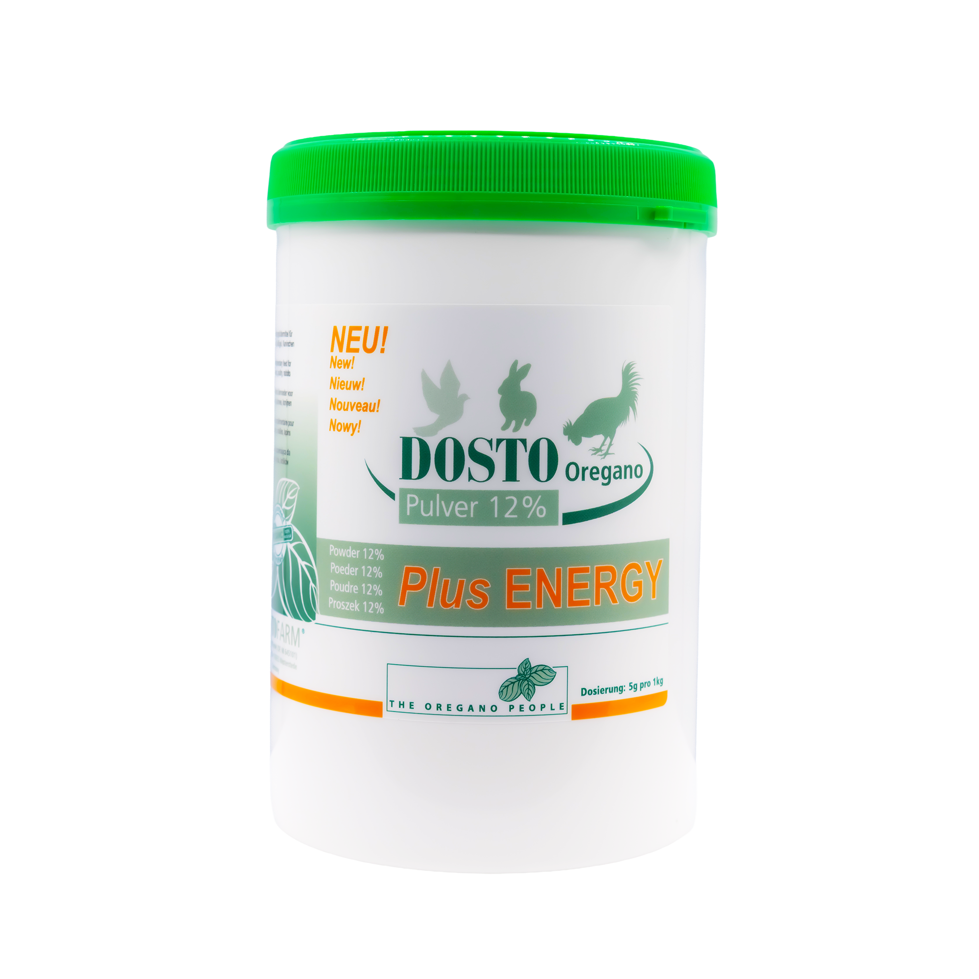 Szczególną uwagę chcemy zwrócić na nowy Dosto Oregano Pulver 12%. Produkt ten posiada nie tylko wyższe stężenie wyciągu z oregano oraz nowe olejki eteryczne dla zdrowia dróg oddechowych ale również regularnie stosowany zapobiega rozwojowi bakterii E-coli a co za tym idzie ma działanie profilaktyczne w chorobie młodych gołębi.