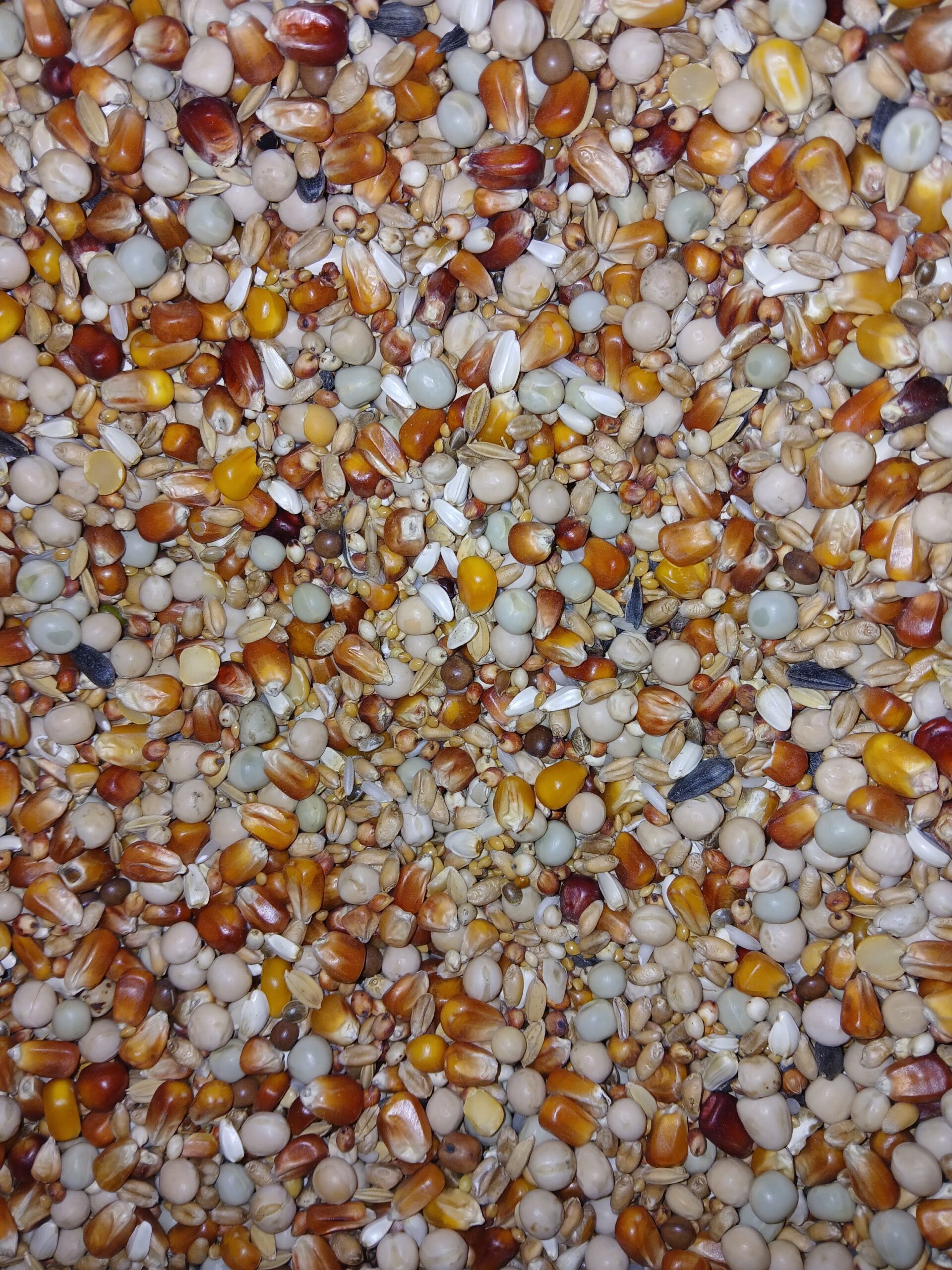 Kukurydza 20%, Pszenica 15%, Mieszanka grochów 17%, Sorgo 7%, Proso złote 6%, Kukurydza czerwona 5%, Dari 5%, Kukurydza pomarańczowa 5%,  Kardi 4%, Ryż Paddy 3%, Peluszka 3%, Słonecznik 3%, Ryż 2%, Konopie 2%, Wyka 2%, Kanar 1%