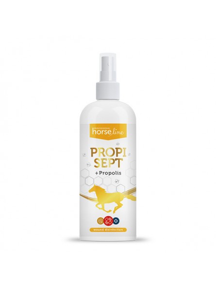 Spray odkażający na rany na bazie propolisu. Płyn odkażający na rany dla koni. Środek dezynfekuje, a także przyspiesza gojenie skaleczeń, otarć czy odparzeń.