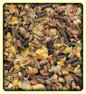 Kompletna wyjątkowa mieszanka rozdrobnionych zbóż, gniecionego czarnego owsa, lucerny płatków z marchwi oraz wielu rozmaitych naturalnych ziół i niezbędnych olejów. Charakteryzuje się bardzo małą zawartością białka tak by nie obciążać pracy nerek